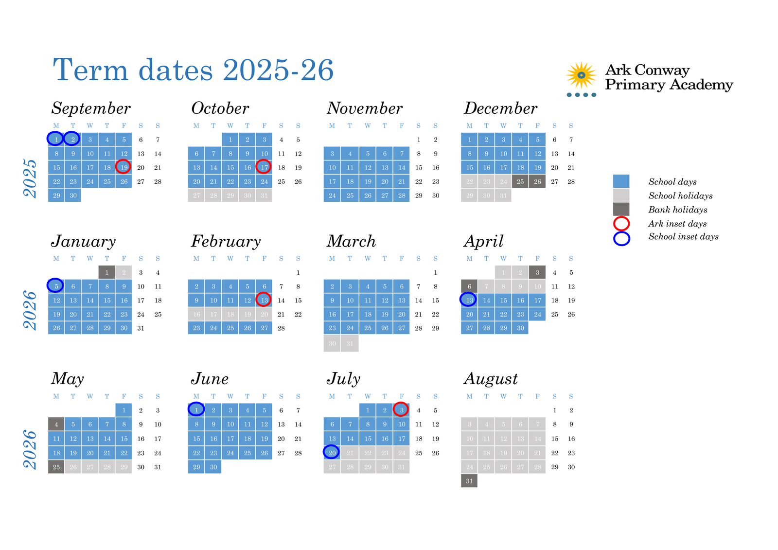Ark Conway Primary Academy Term Dates 2025–26