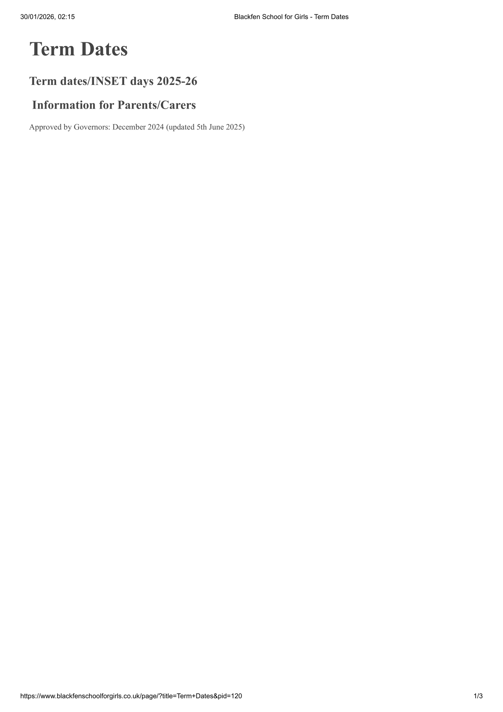 The school Term Dates shown on this page has been sourced directly from the official Blackfen School for Girls 25-26 Term Dates Revised PDF website. Please be aware that all dates and events may be amended at the discretion of the school or local council. For the most up-to-date and accurate information, we recommend checking the official council website or contacting the school office.