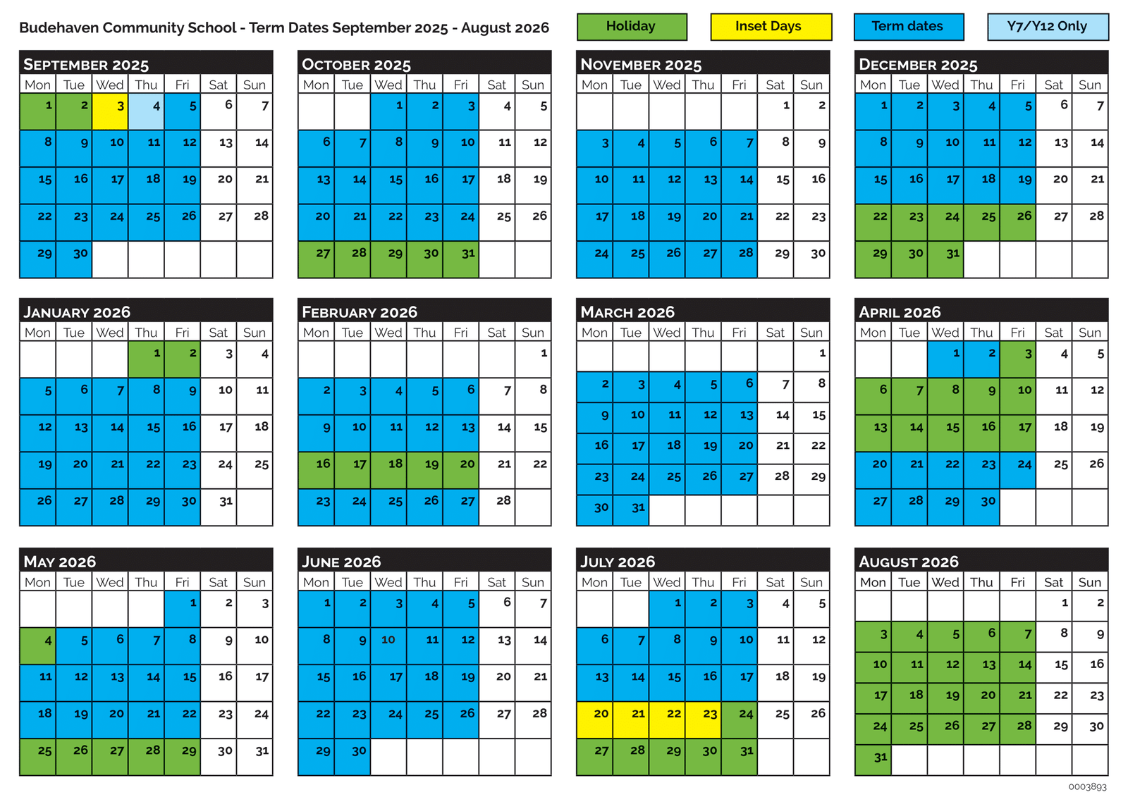 Visit the official Budehaven Community School Website for any updates to term dates and events.