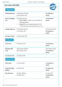 The school Term Dates shown on this page has been sourced directly from the official Chesterton Community term dates website. Please be aware that all dates and events may be amended at the discretion of the school or local council. For the most up-to-date and accurate information, we recommend checking the official council website or contacting the school office.