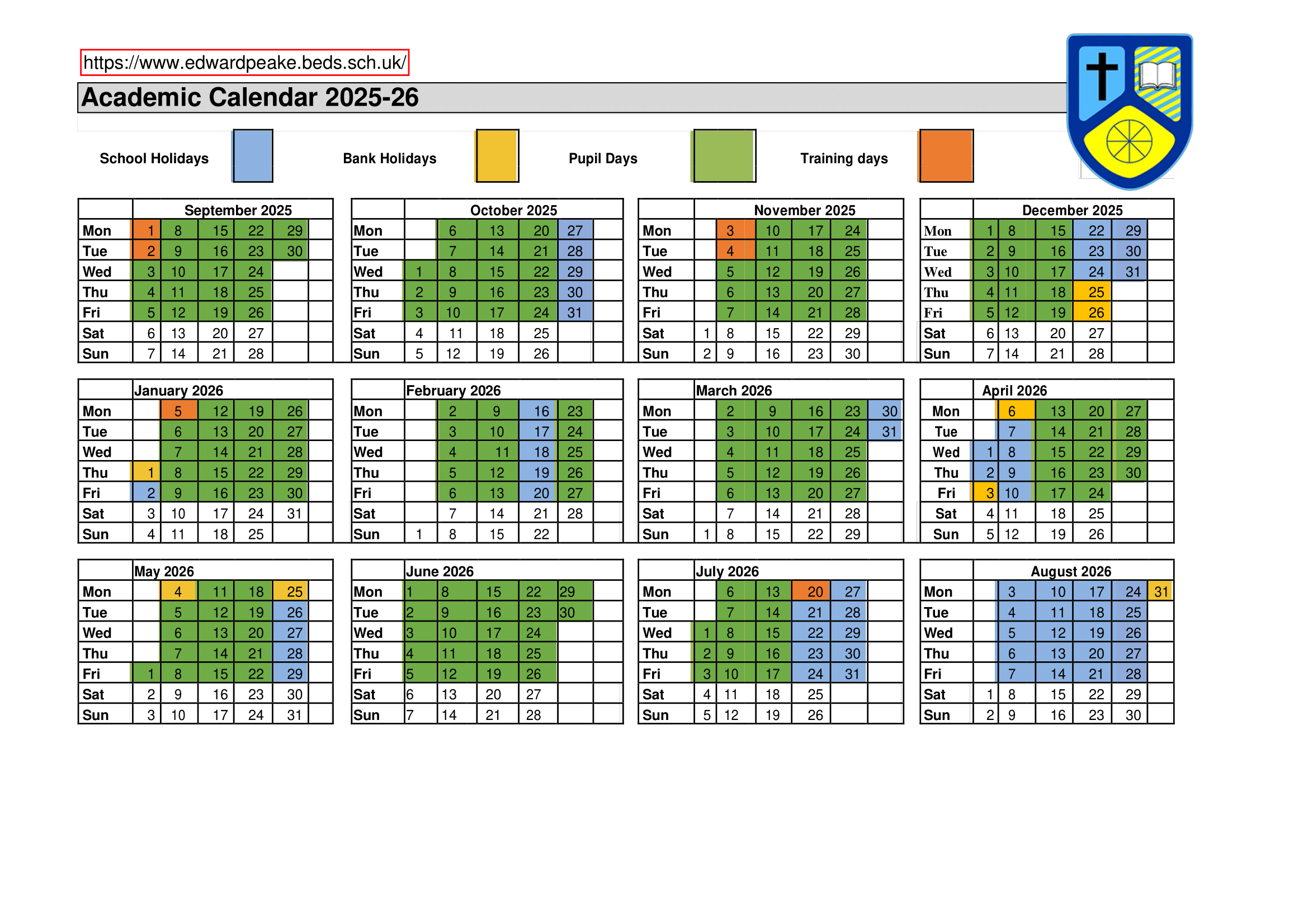 The school Term Dates shown on this page has been sourced directly from the official Edward Peake – C of E School term dates website. Please be aware that all dates and events may be amended at the discretion of the school or local council. For the most up-to-date and accurate information, we recommend checking the official council website or contacting the school office.