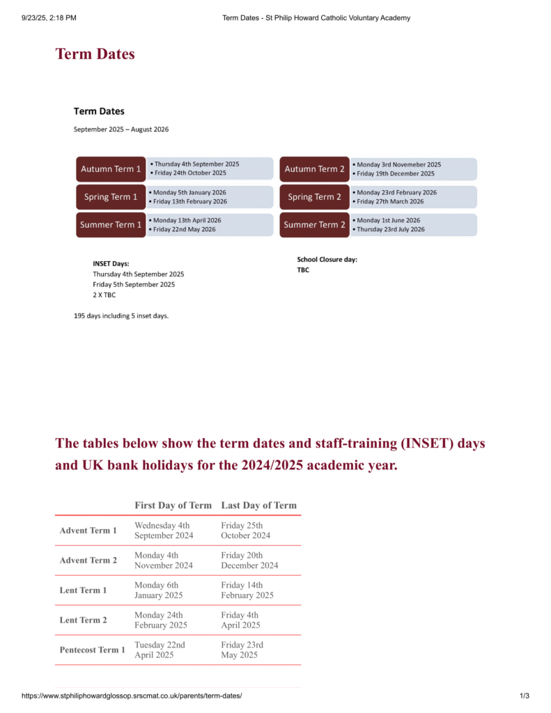 Download PDF View Original Calendar View Original Calendar Derbyshire County Council Calendar PDF Get Alerts St Philip Howard Catholic Voluntary