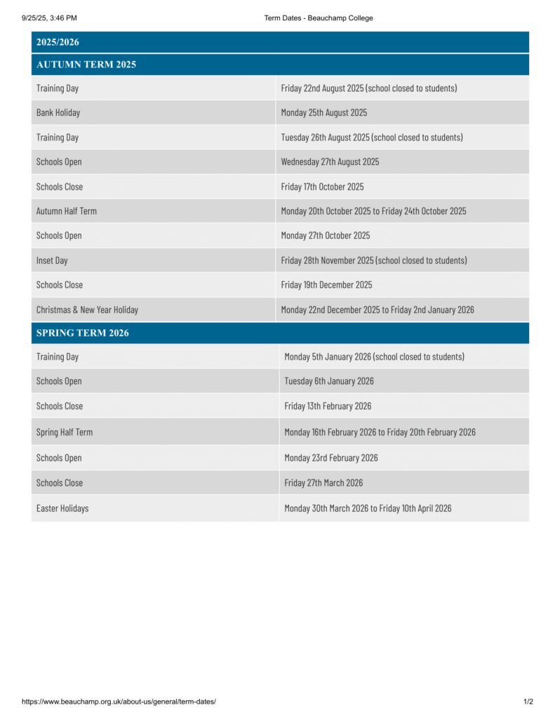 Download PDF View Original Calendar View Original Calendar Leicestershire County Council Calendar PDF Get Alerts Beauchamp College Term dates (2025-2026)