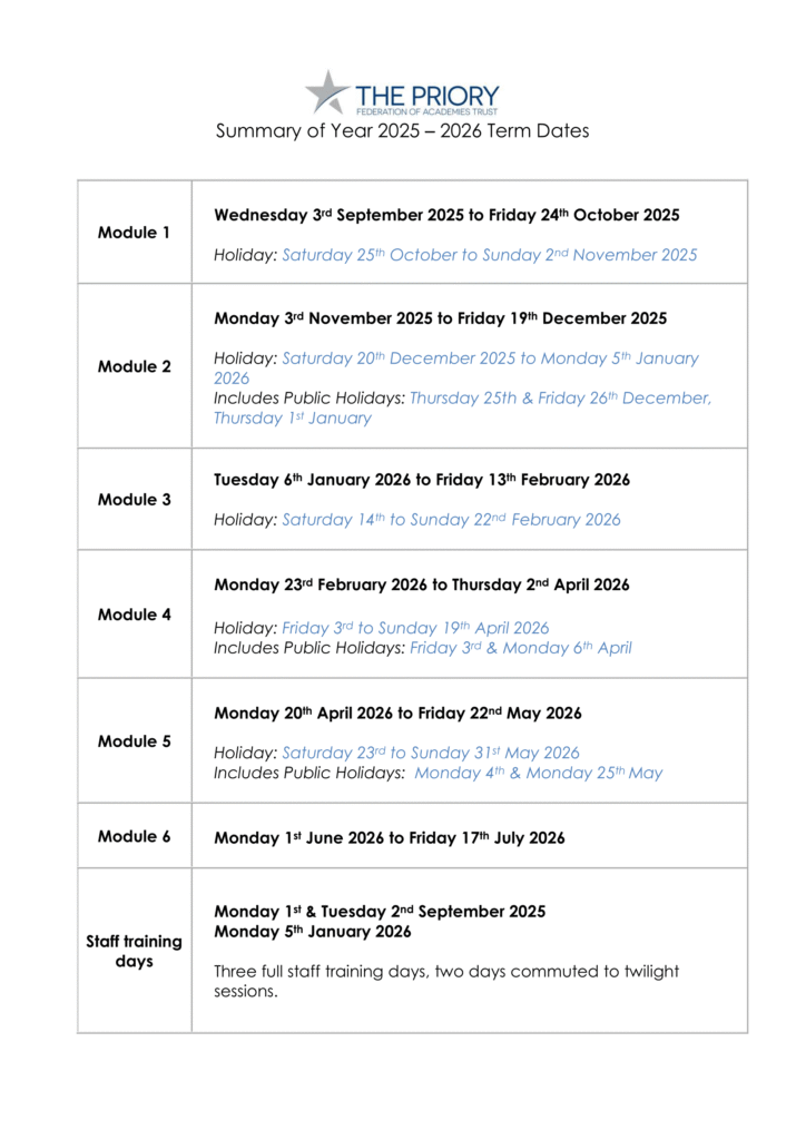 Download PDF View Original Calendar Lincolnshire County Council Calendar PDF Get Alerts The Priory Federation of Academies Trust Term dates