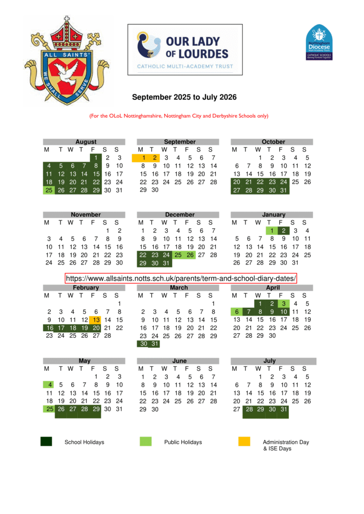 Download PDF View Original Calendar Northamptonshire County Council Calendar PDF Get Alerts All Saints Catholic Voluntary Academy Term dates (2025-2026)