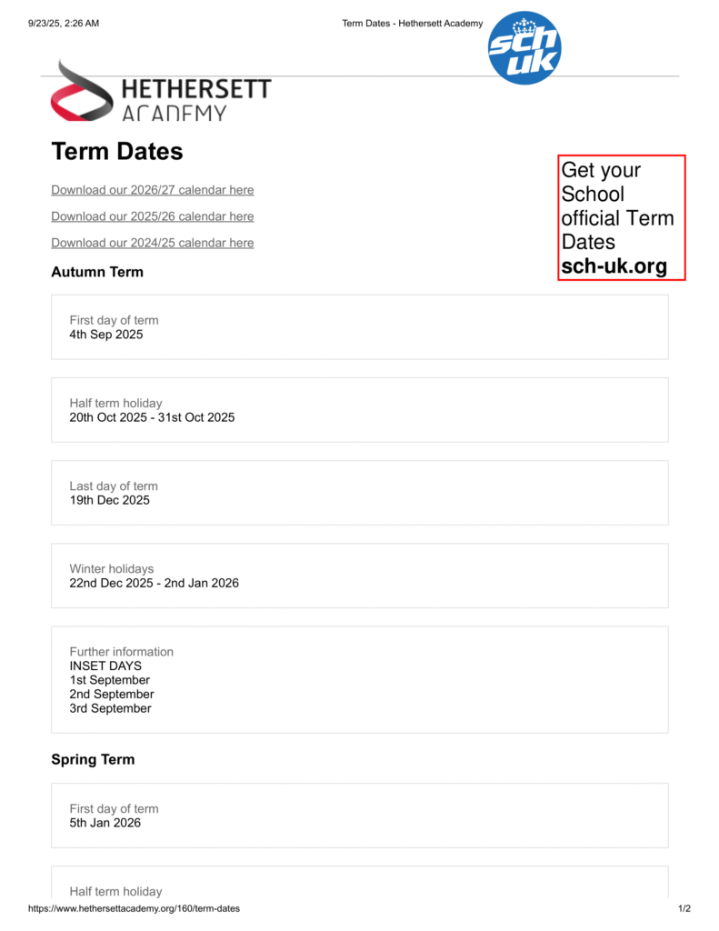 Download PDF View Original Calendar View Original Calendar Norfolk County Council Calendar PDF Get Alerts Hethersett Academy Term dates (2025-2026)