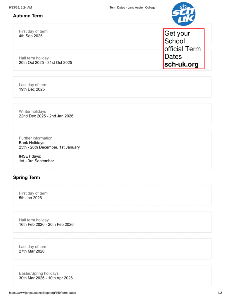 Download PDF View Original Calendar Norfolk County Council Calendar PDF Get Alerts Inspiration Trust Term dates (2025-2026) Inspiration Trust Term