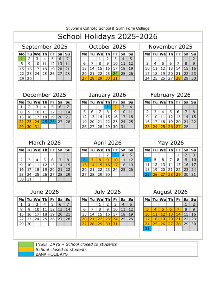 Download PDF View Original Calendar View Original Calendar Durham County Council Calendar PDF Get Alerts St John’s Catholic School &