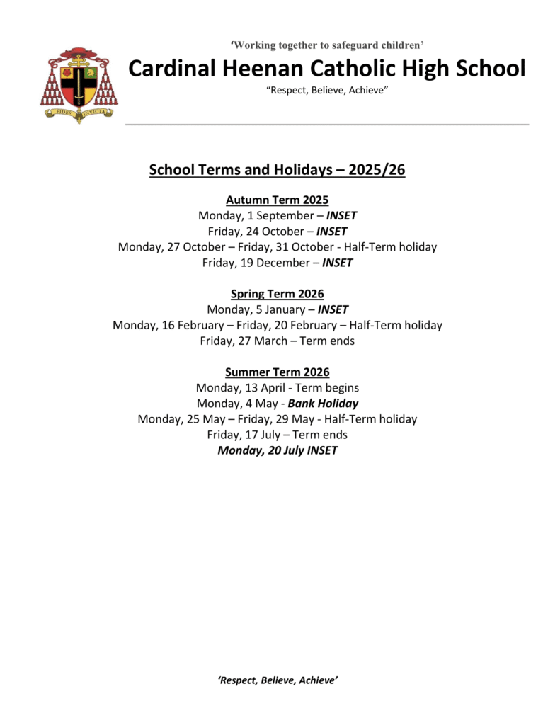 England, Merseyside, North WestCardinal Heenan Catholic High School Term Dates 25-26 Official Updates