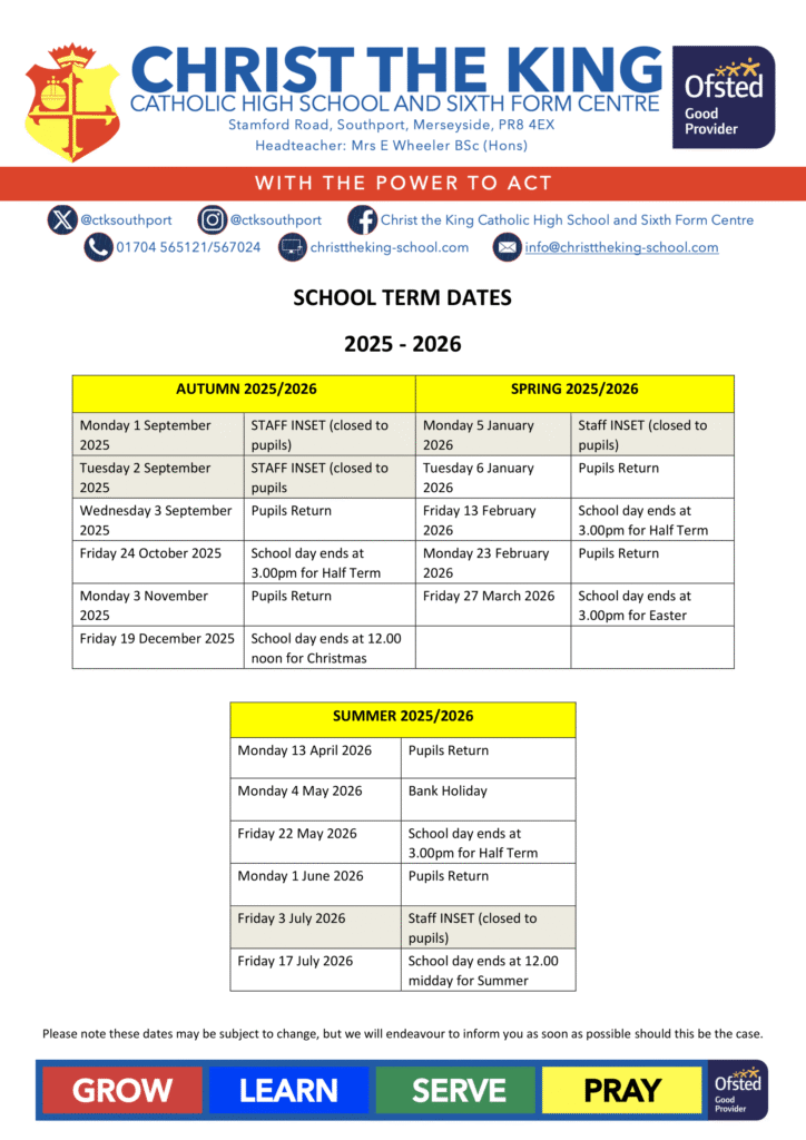 England, Merseyside, North WestChrist the King Catholic High School and Sixth Form Centre Term Dates 25-26 Official