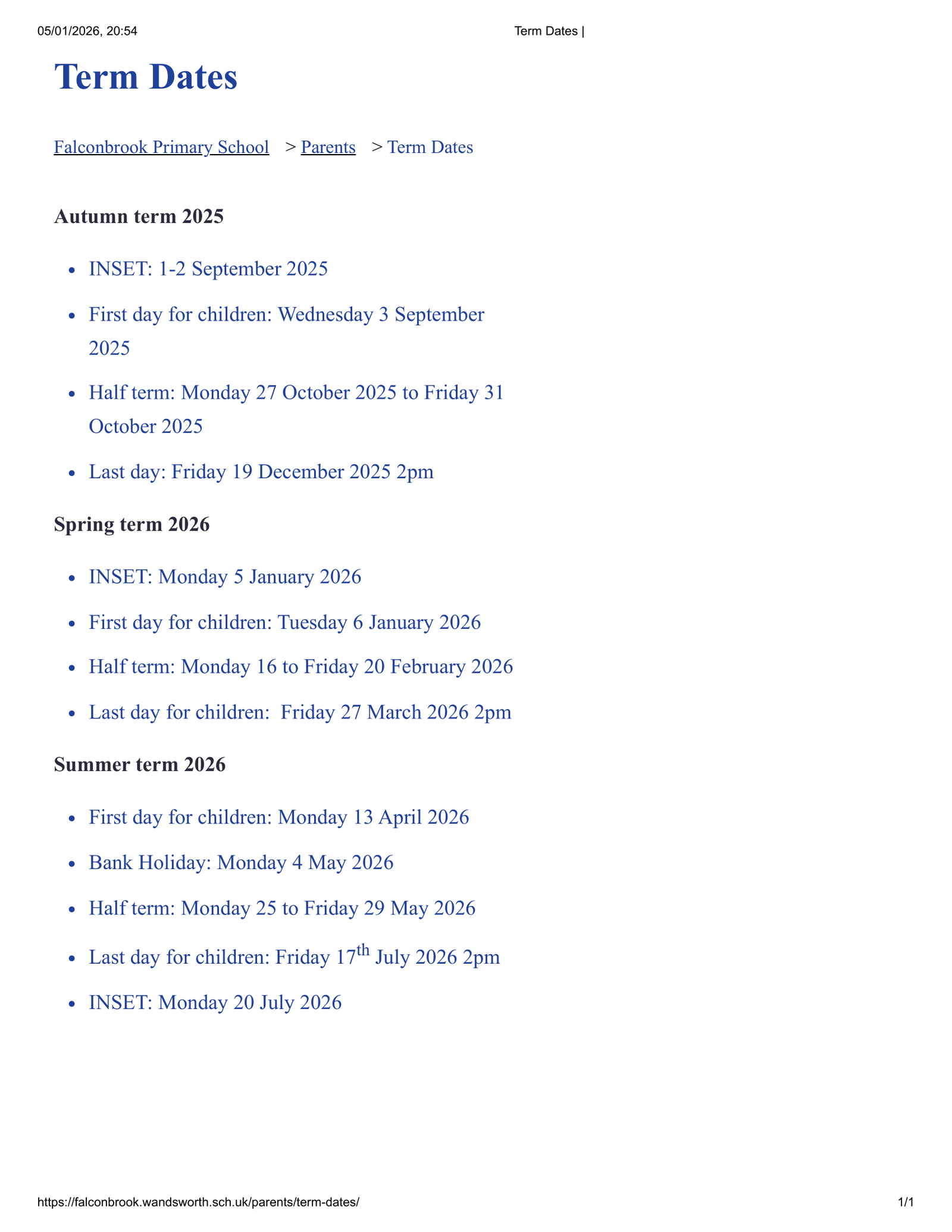 Falconbrook Primary School Term Dates 2025–2026 – FAQs