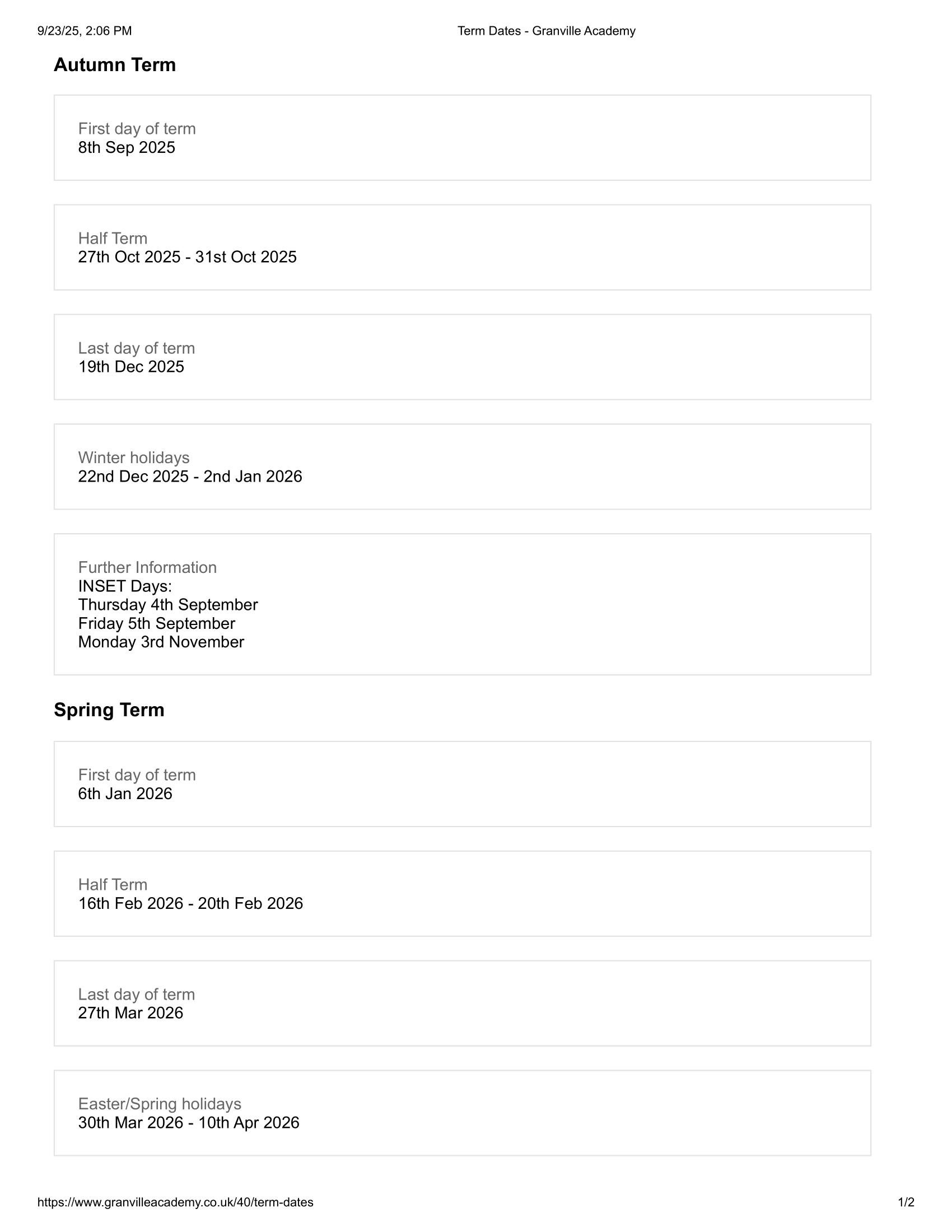 Term dates source: granvilleacademy.co.uk/40/term-dates