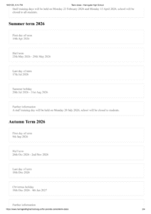 - 26th Jul 2027 – Disaggregated inset day (school closed to staff and students).