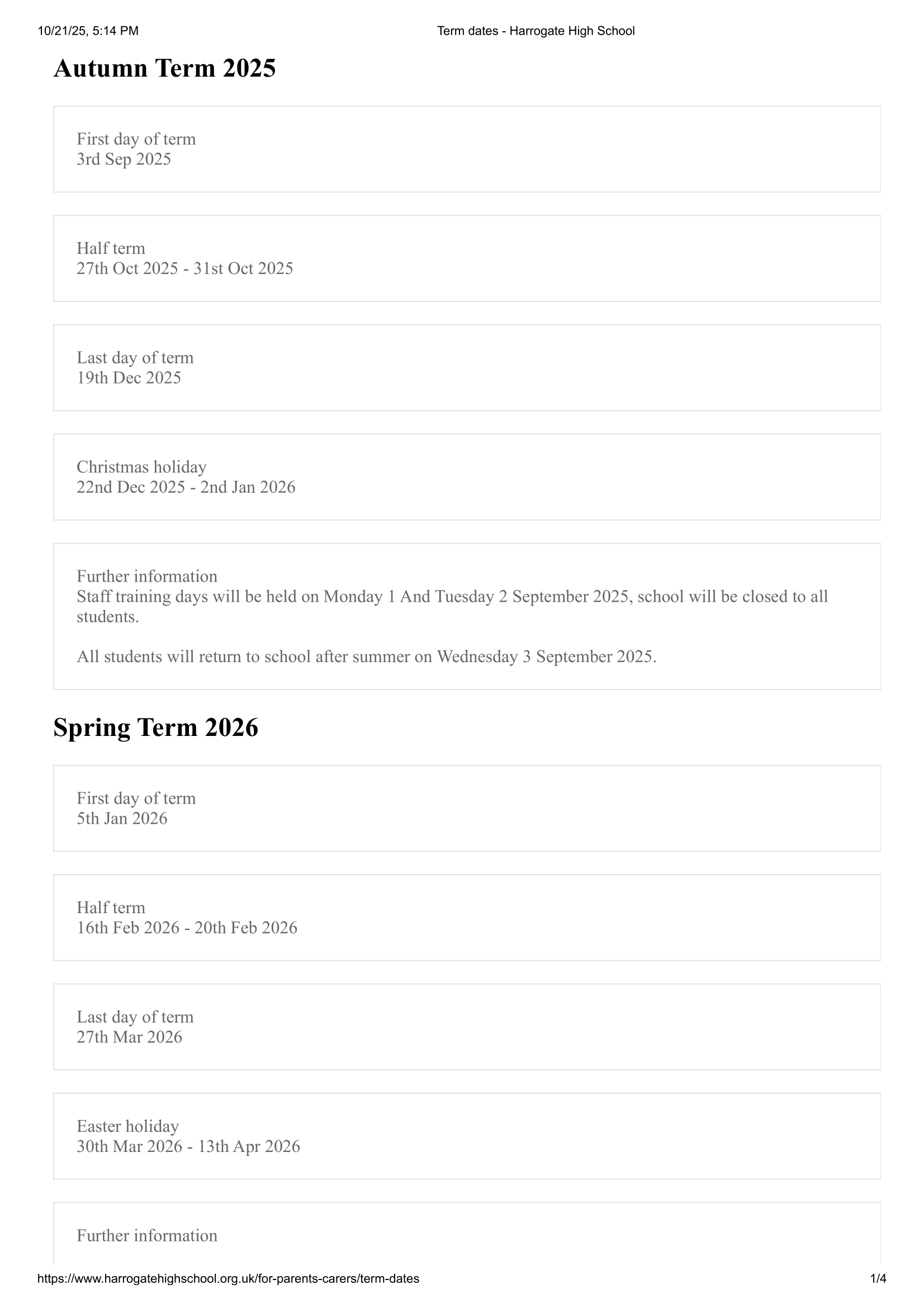 | 27th Mar 2026 | Last day of Spring Term 2026 |
