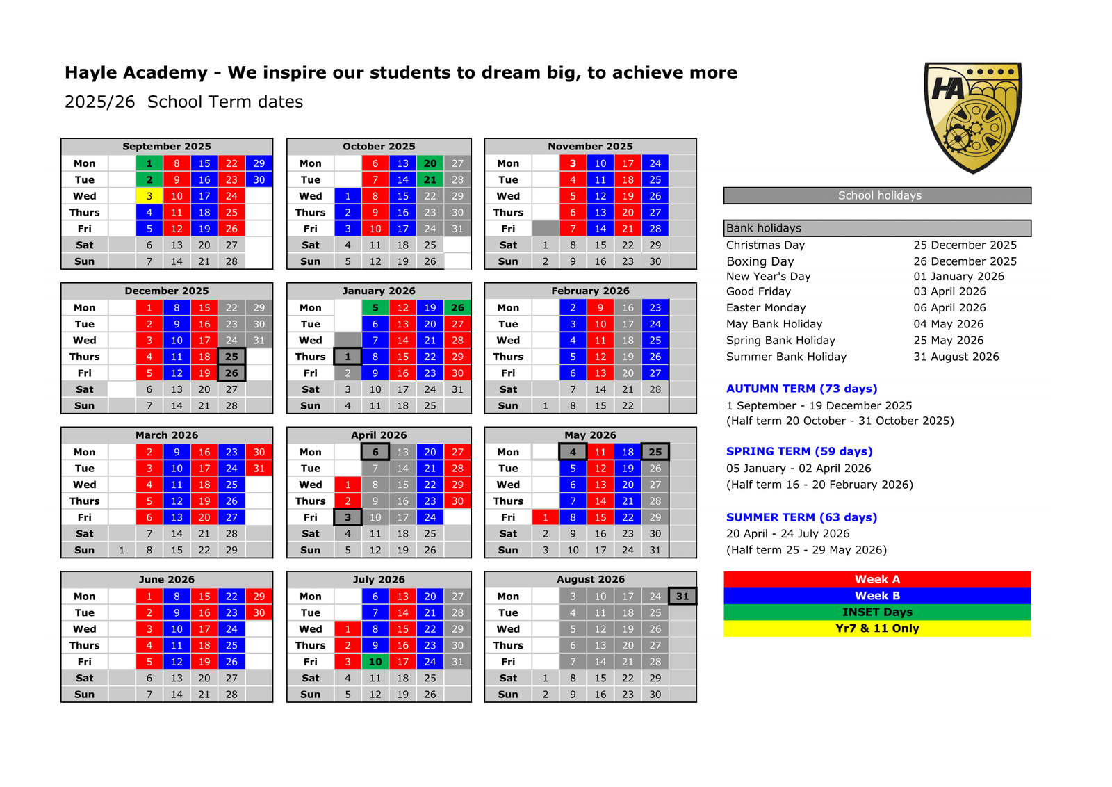 Hayle Academy Term dates (2025-2026)