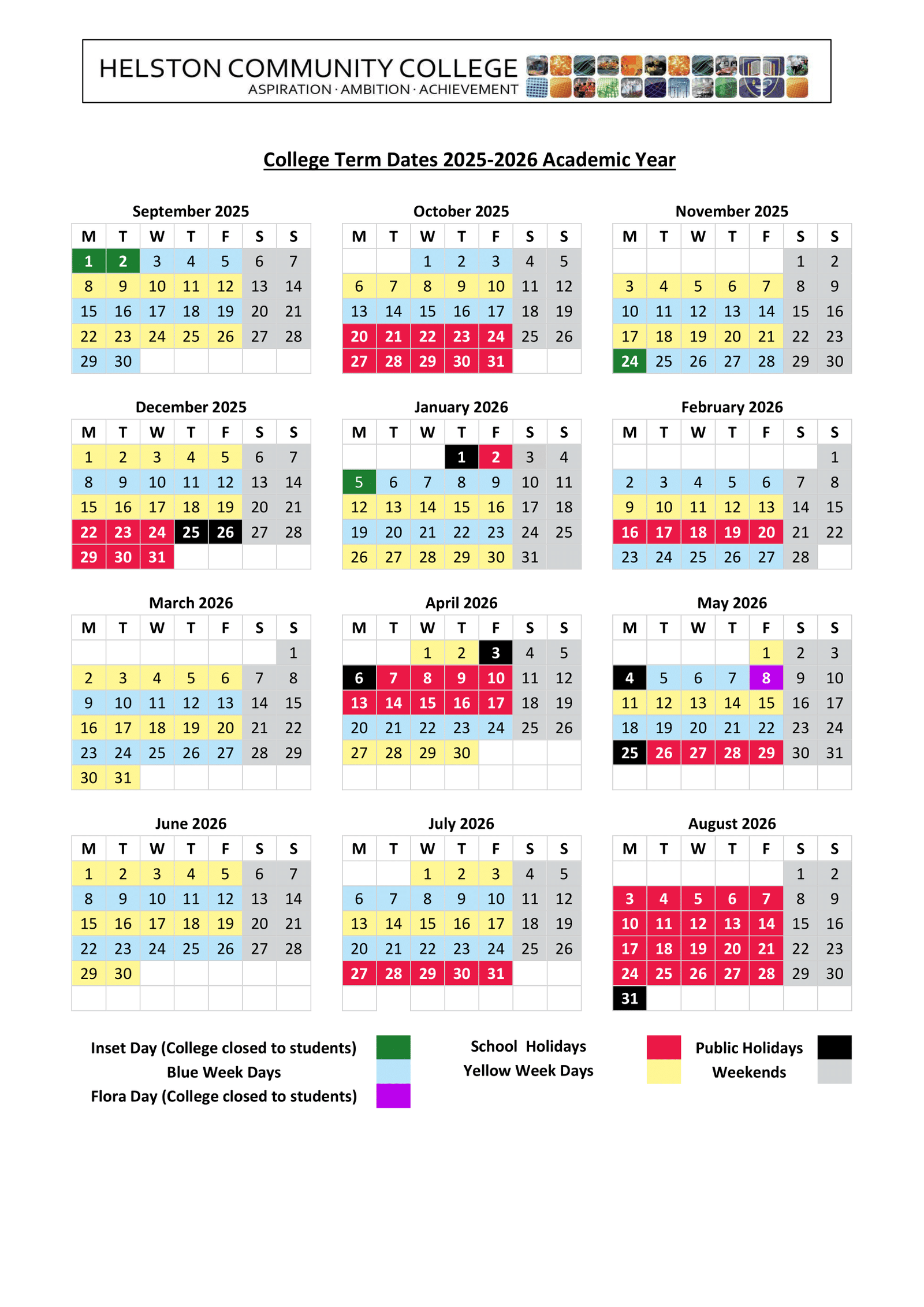 | Sep 1, 2025 | Inset Day (College closed to students) |