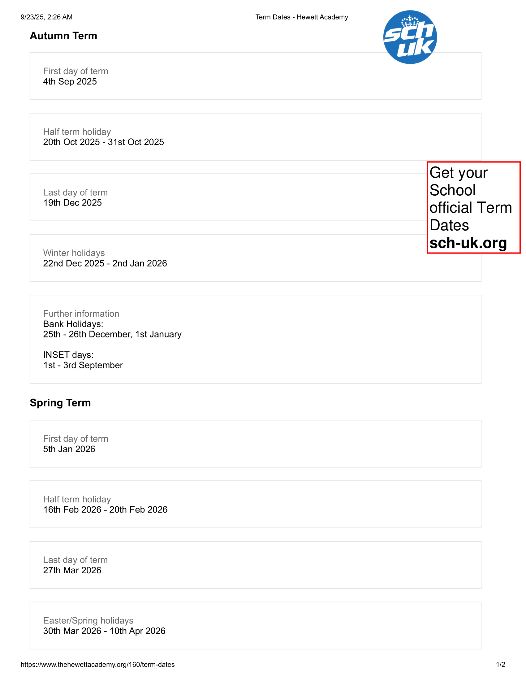 Hewett Academy 25-26 Term dates Revised [pdf]