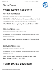 Kesgrave High School Suffolk Term dates (2025-2026)