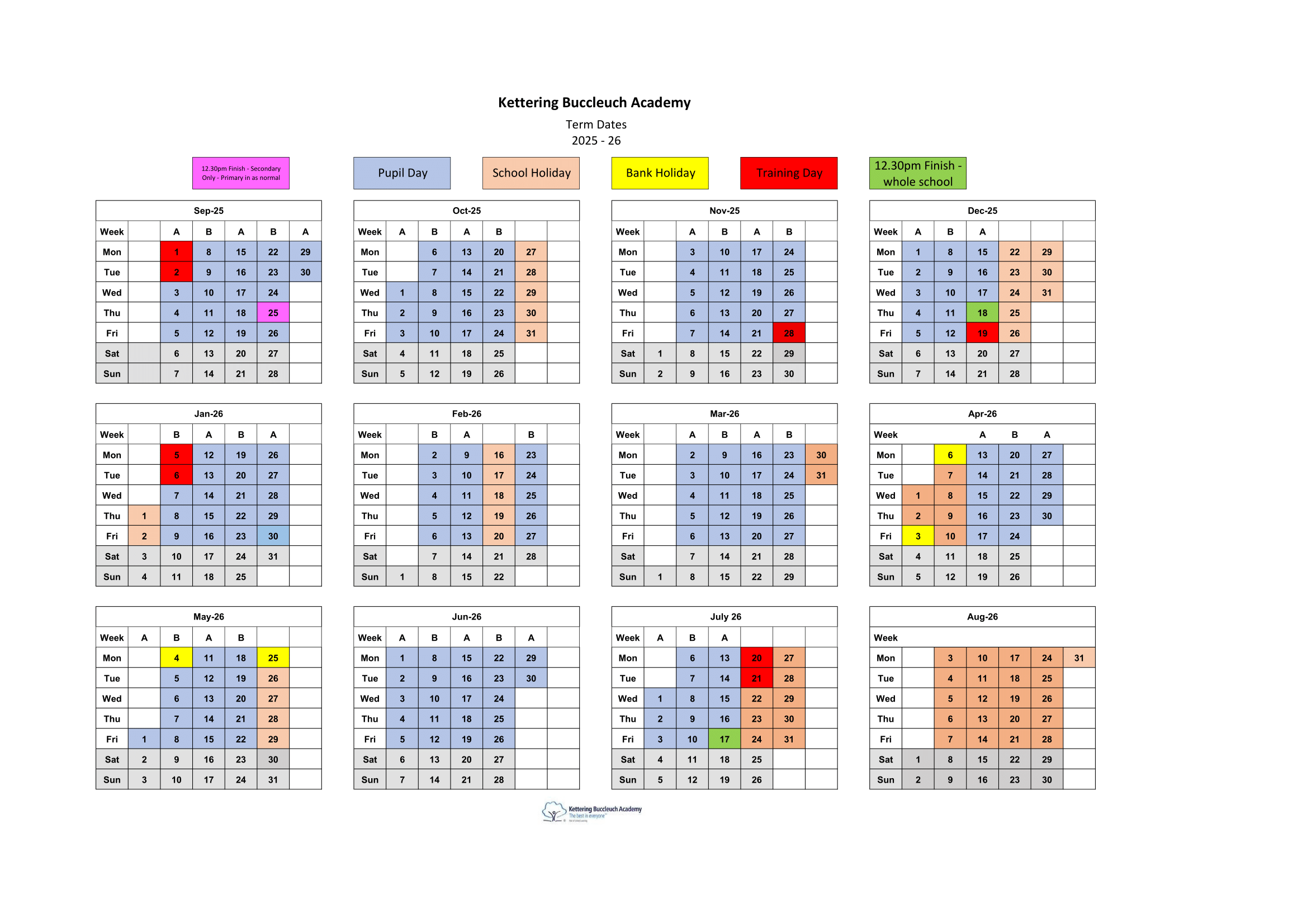 Kettering Buccleuch Academy Term Dates 25-26 Revised