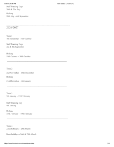 Spring Term (T4): 22 February 2027 – 25 March 2027.