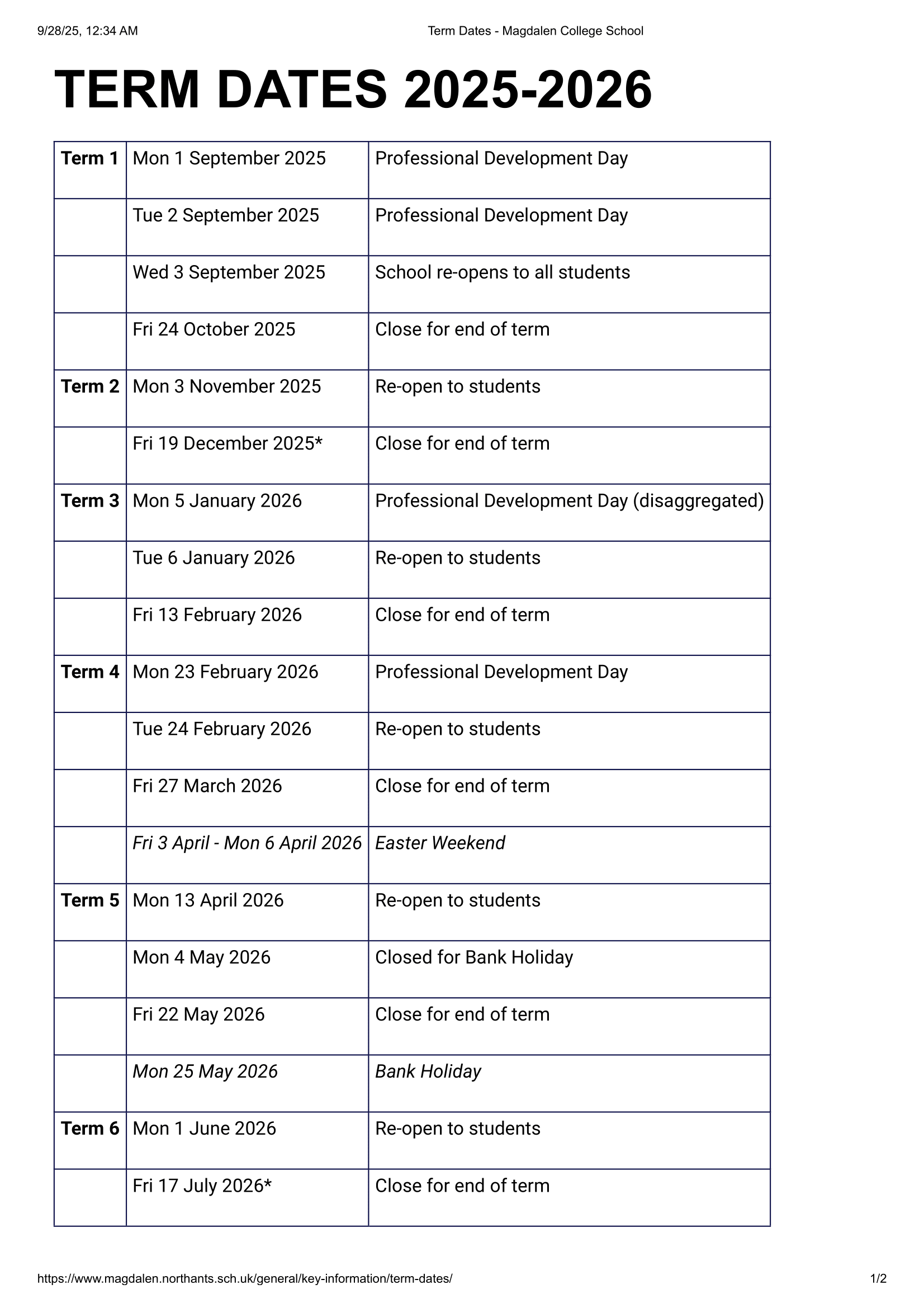 Magdalen College School – Term Dates FAQ (2025–2026)