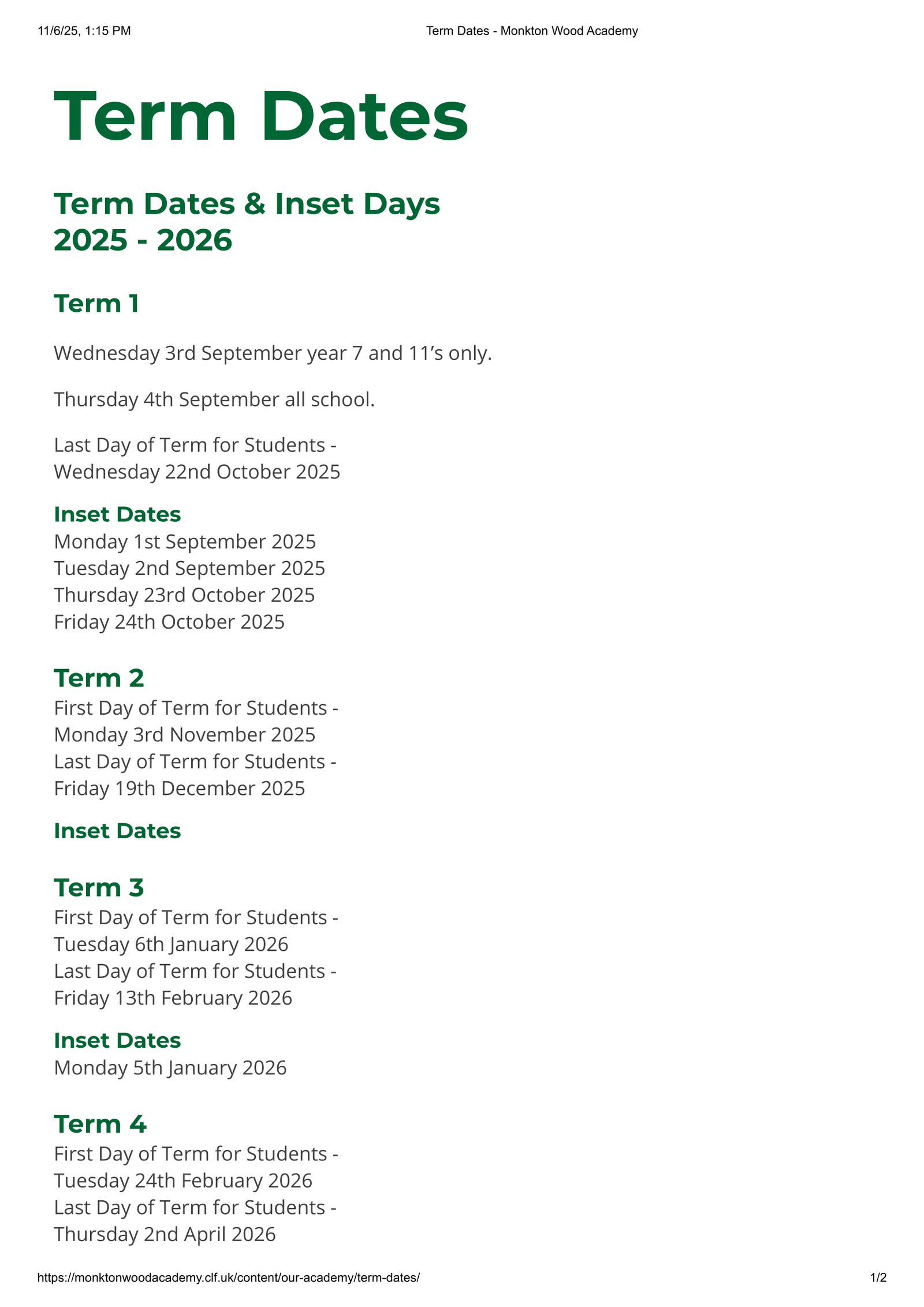For the most accurate and updated information, please visit the official Monkton Wood Academy website: