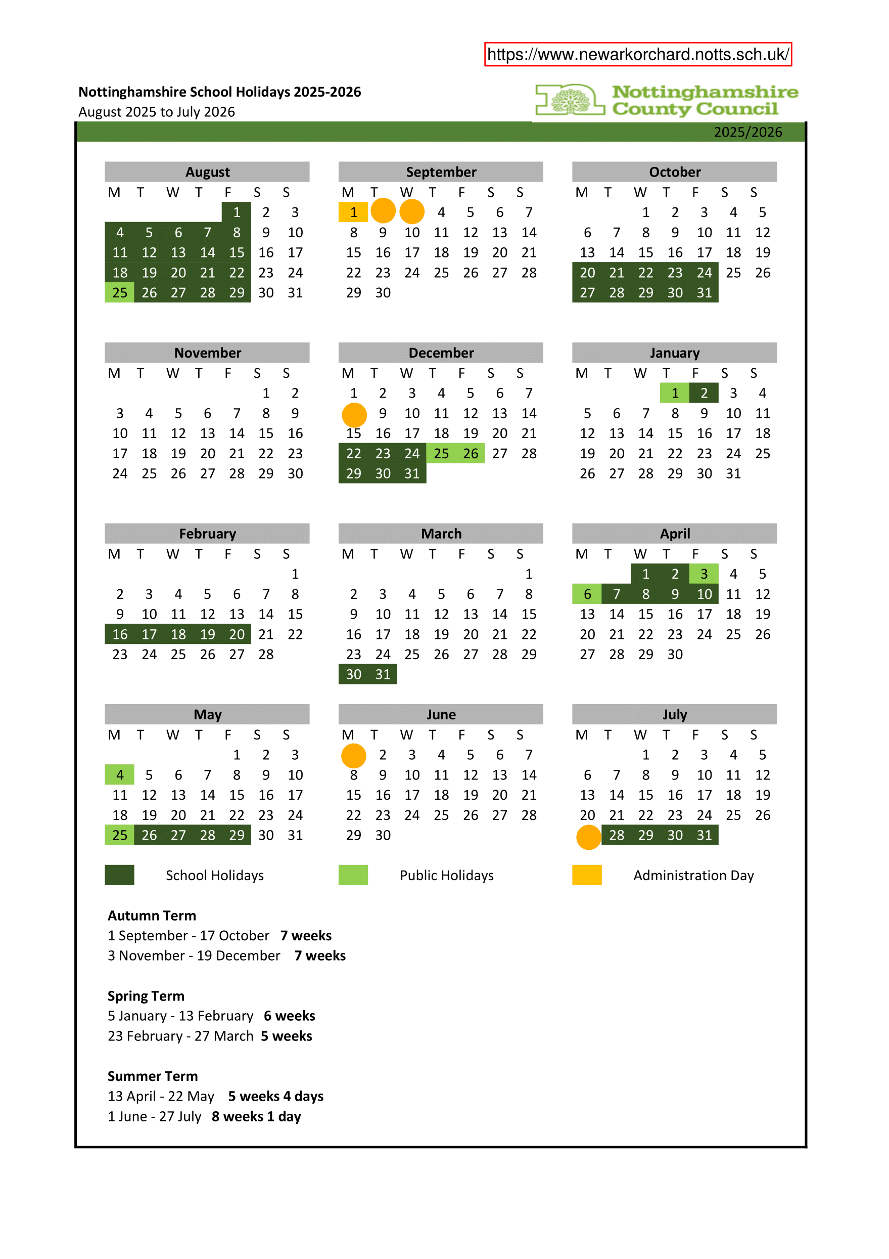 Newark Orchard School Term dates (2025-2026)