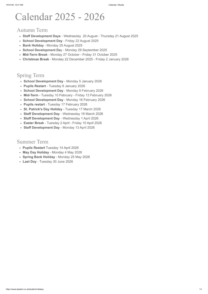 St. Patrick’s BNS term dates 25-26 Revised