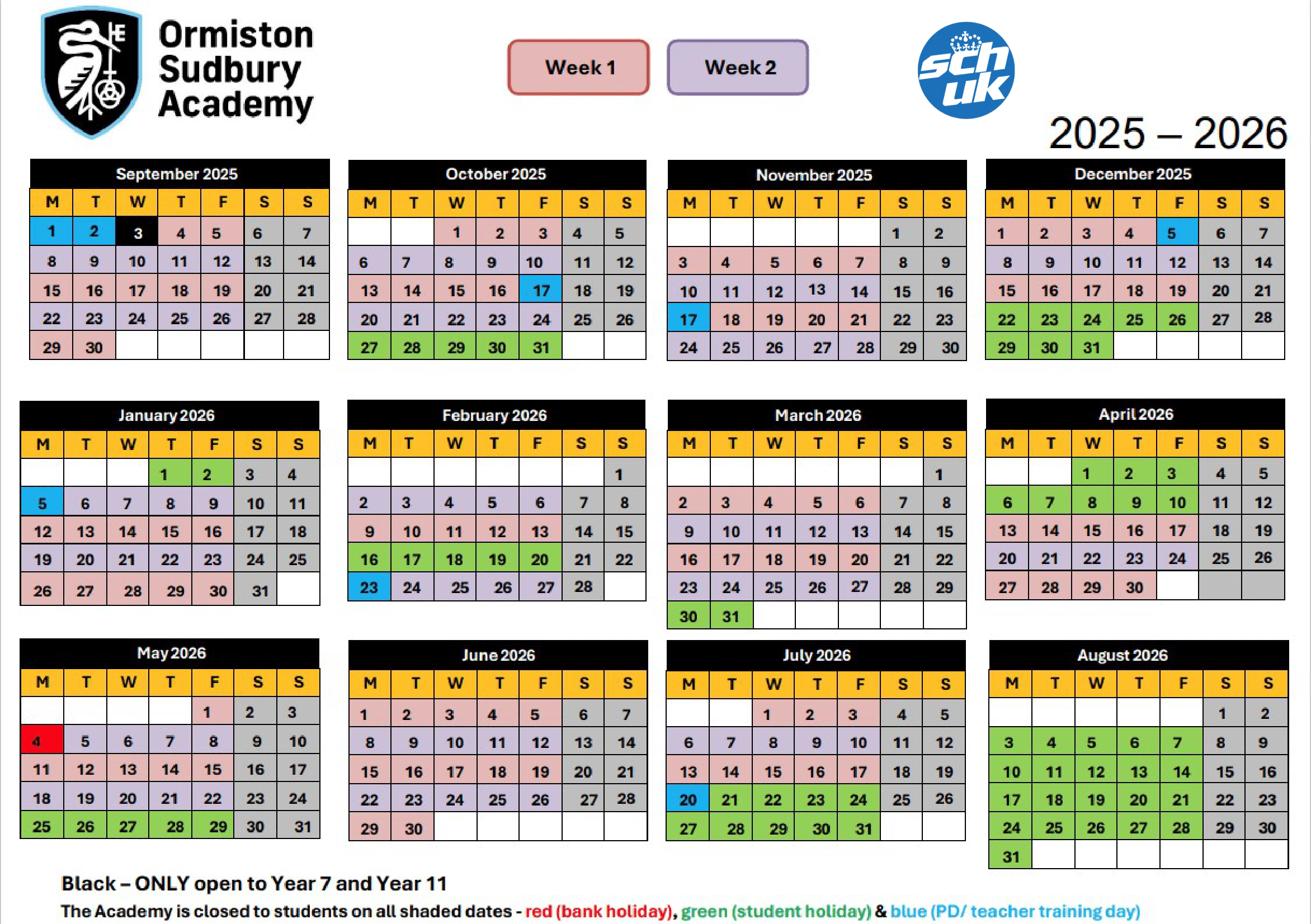 Ormiston Sudbury Academy Term dates (2025-2026)