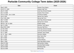 Parkside Community College — Term Dates FAQ (2025–2026)