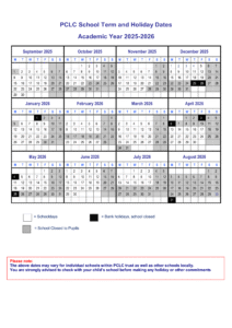 PCLC School Term and Holiday Dates – Term Dates FAQ (Academic Year 2025–2026)