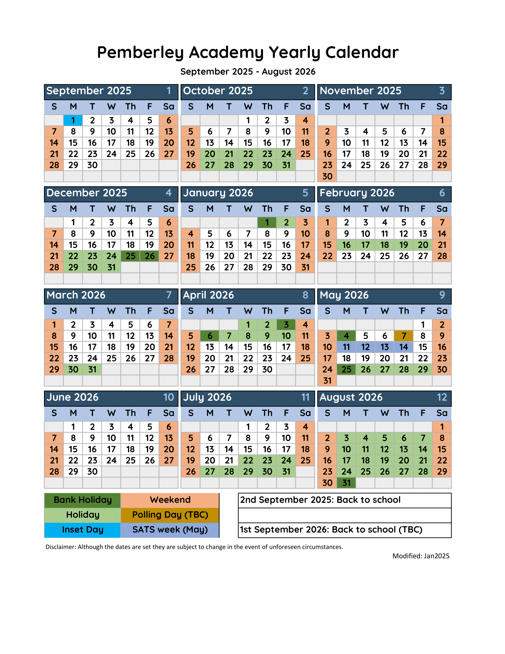 Pemberley Academy Primary School Term Dates 25-26 [Updated]