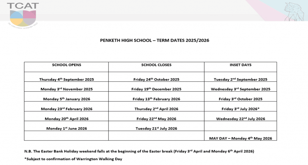Penketh High School – Term Dates 2025/2026 (FAQ)