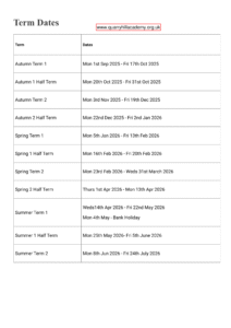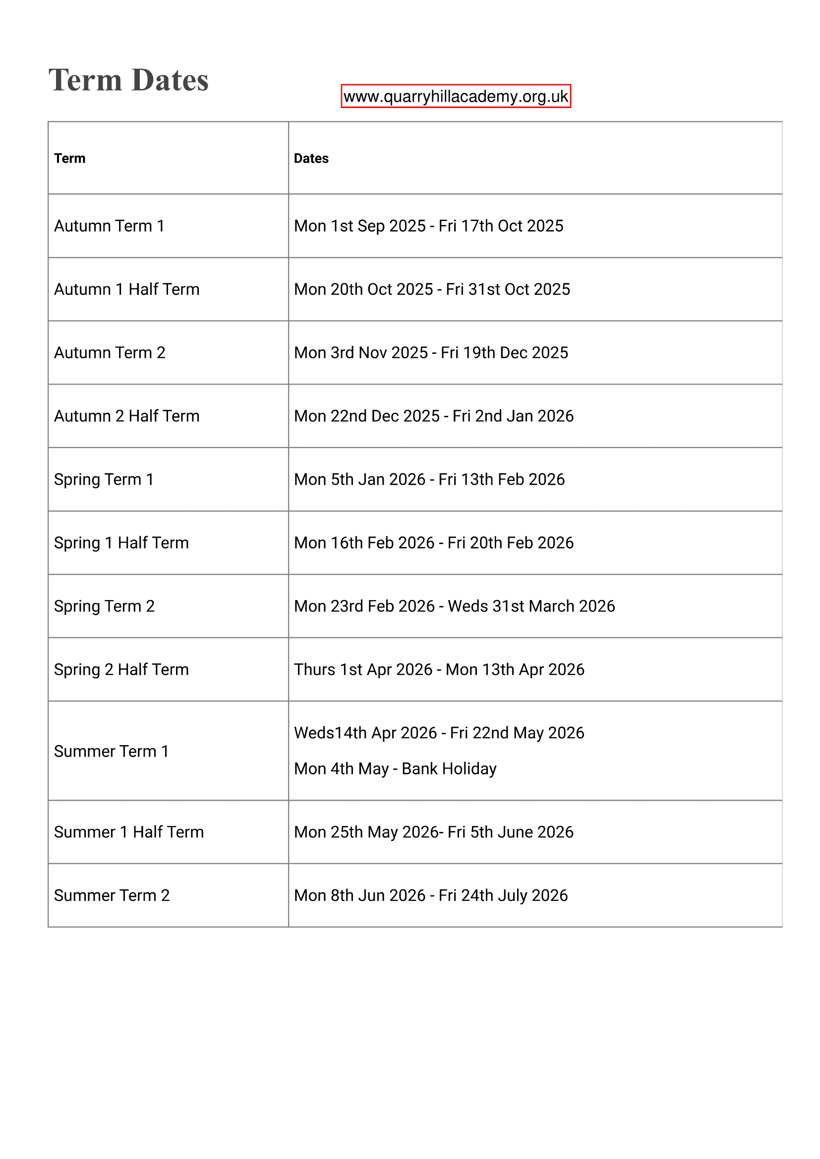 Quarry Hill Academy – Term Dates 25-26 pdf