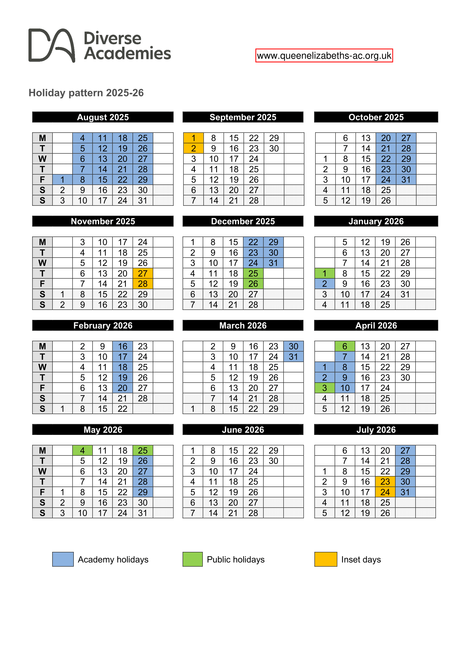 Queen Elizabeth's Academy term dates (2025–2026)