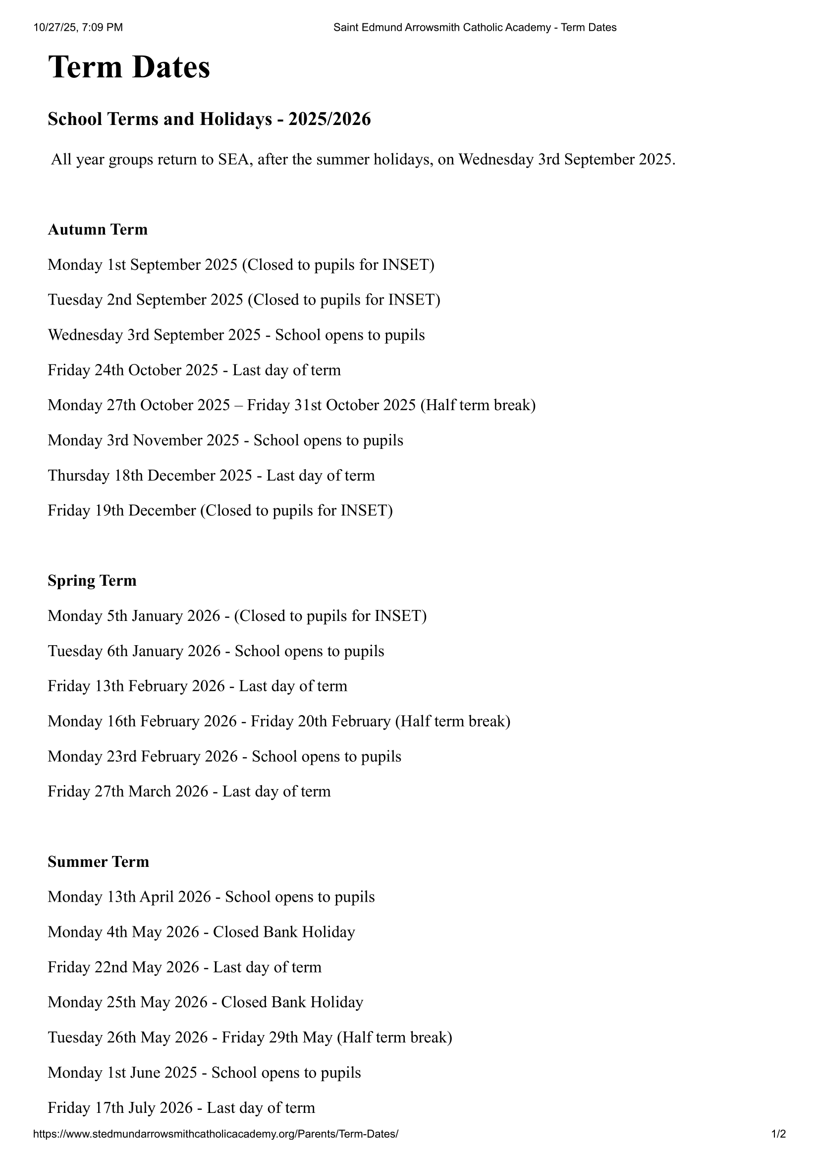Saint Edmund Arrowsmith Catholic Academy – Term Dates FAQ (2025–2026)