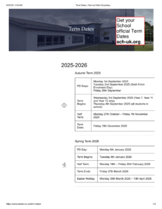 The school Term Dates shown on this page has been sourced directly from the official Samuel Ward Academy term dates website. Please be aware that all dates and events may be amended at the discretion of the school or local council. For the most up-to-date and accurate information, we recommend checking the official council website or contacting the school office.
