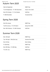 | Mon 26th May – Fri 30th May 2025 | Summer Half Term |