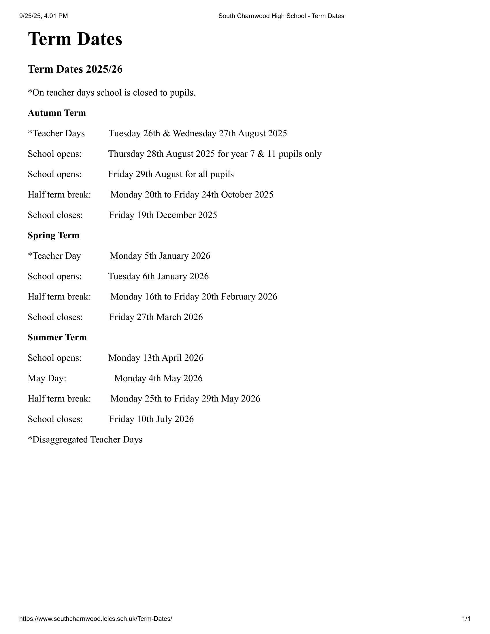 South Charnwood High School – Term Dates FAQ (2025/26)
