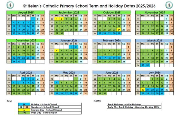 St Helen's Catholic Primary School Term dates (2025-2026)