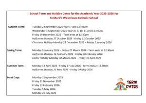 St Mark’s West Essex Catholic School Term dates (2025-2026)