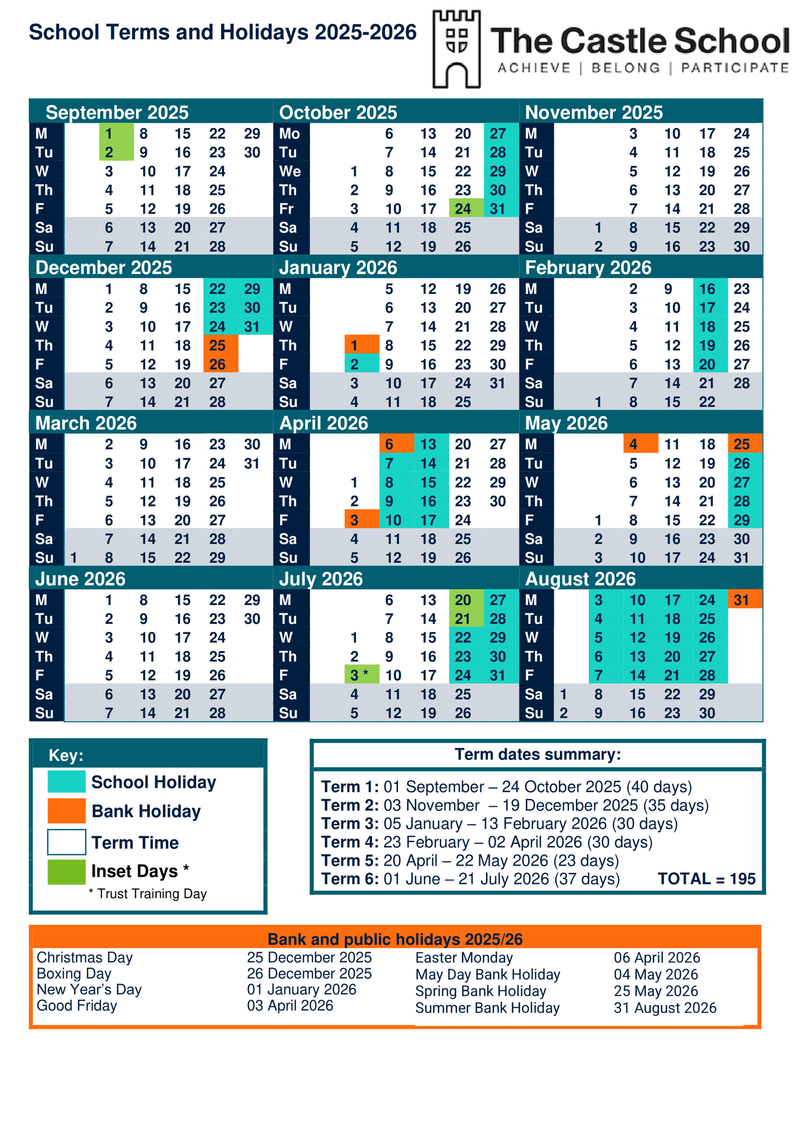 The Castle School Term Dates 2025–2026