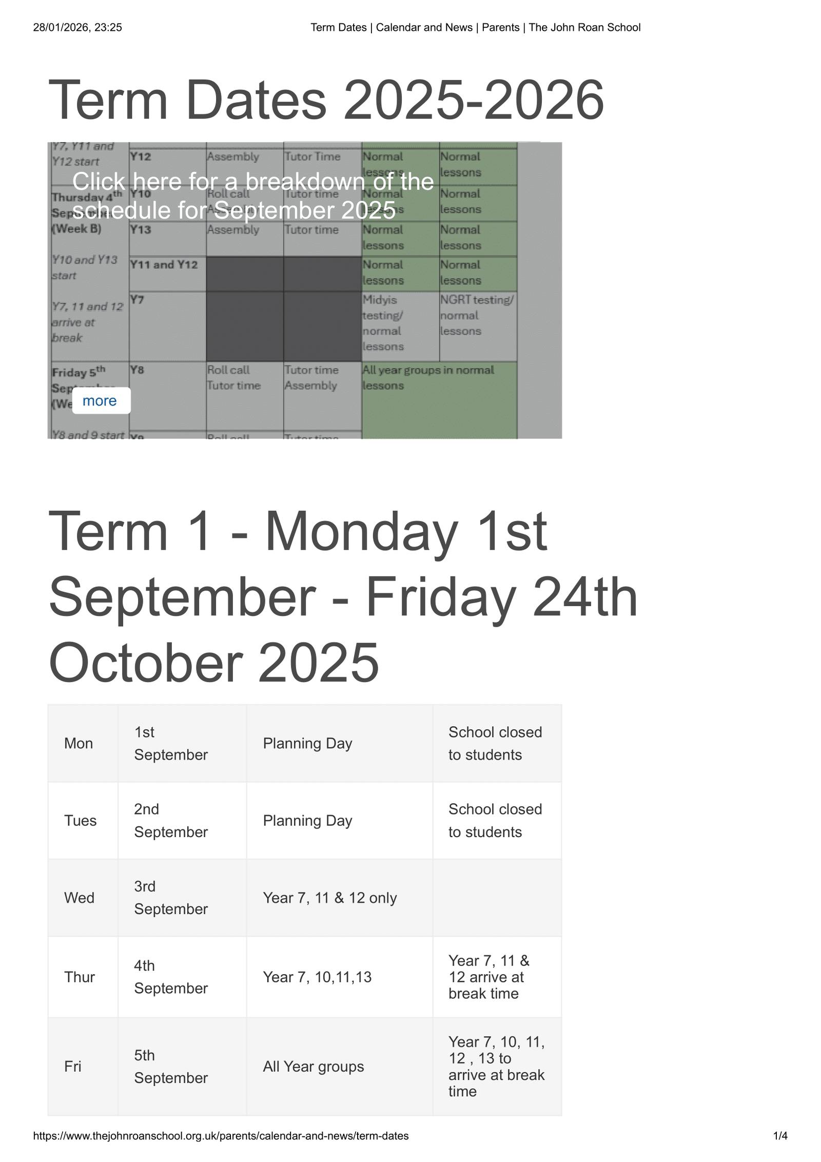 The John Roan School Term Dates 2025–2026