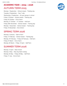The Netherhall School Term dates (2025-2026)