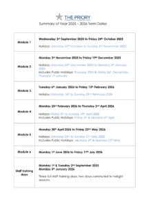The Priory Federation of Academies Trust Term dates (2025-2026)