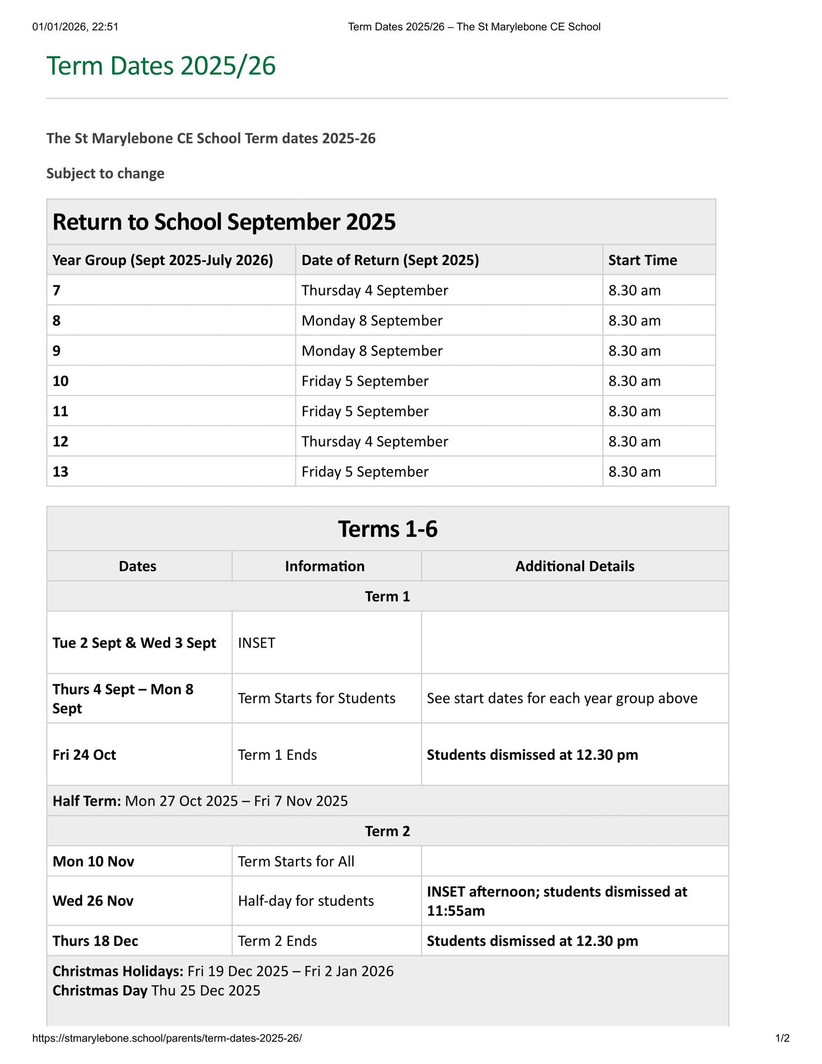 The St Marylebone CE School Term Dates 2025–2026 FAQs