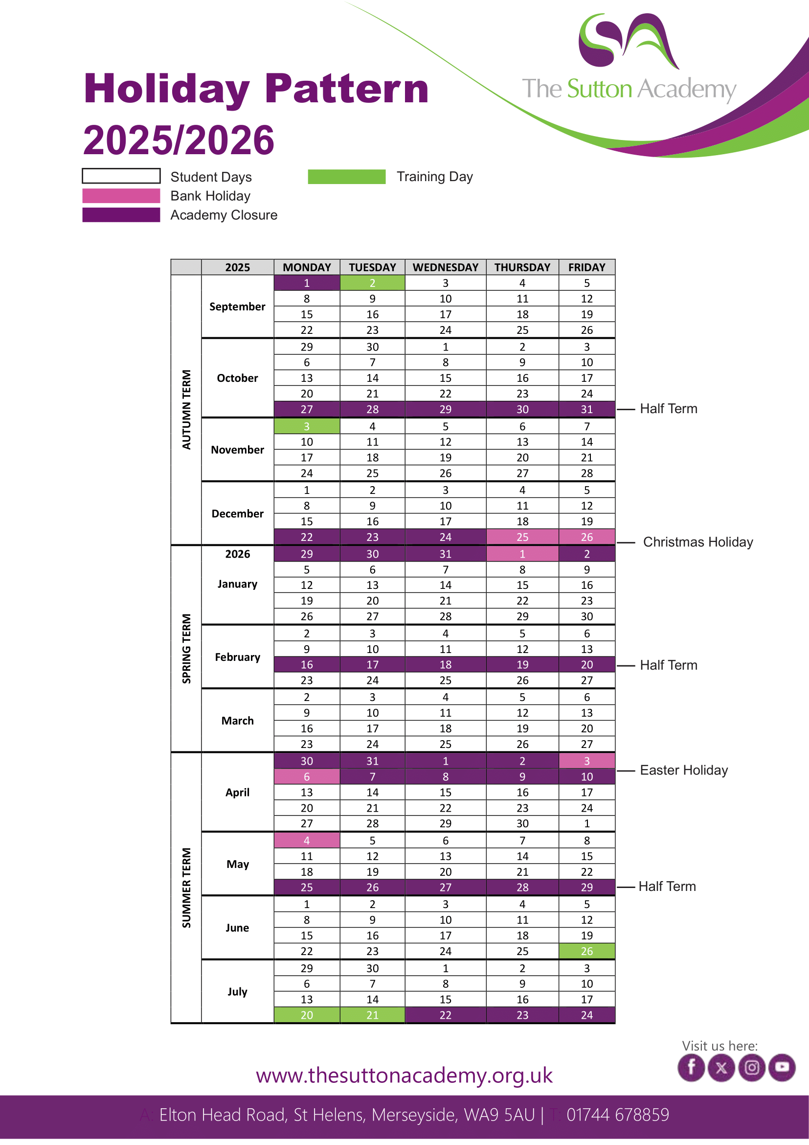The Sutton Academy Term Dates 2025/2026