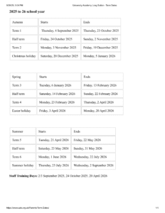 | Sep 4, 2025 | Autumn Term starts (Term 1) |