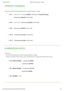 - Year 11 Mock Exams: wb Mon 10/11/2025 and wb Mon 2/02/2026