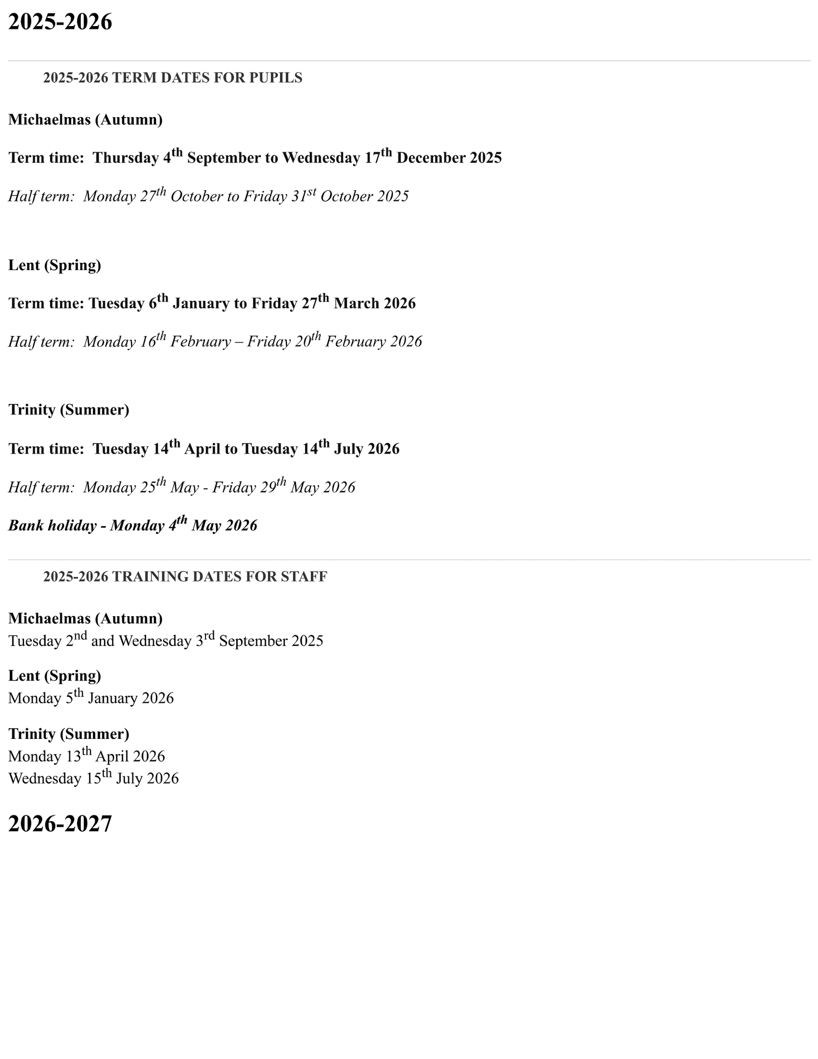 The Spring Term runs from Tuesday 6 January 2026 to Friday 27 March 2026.